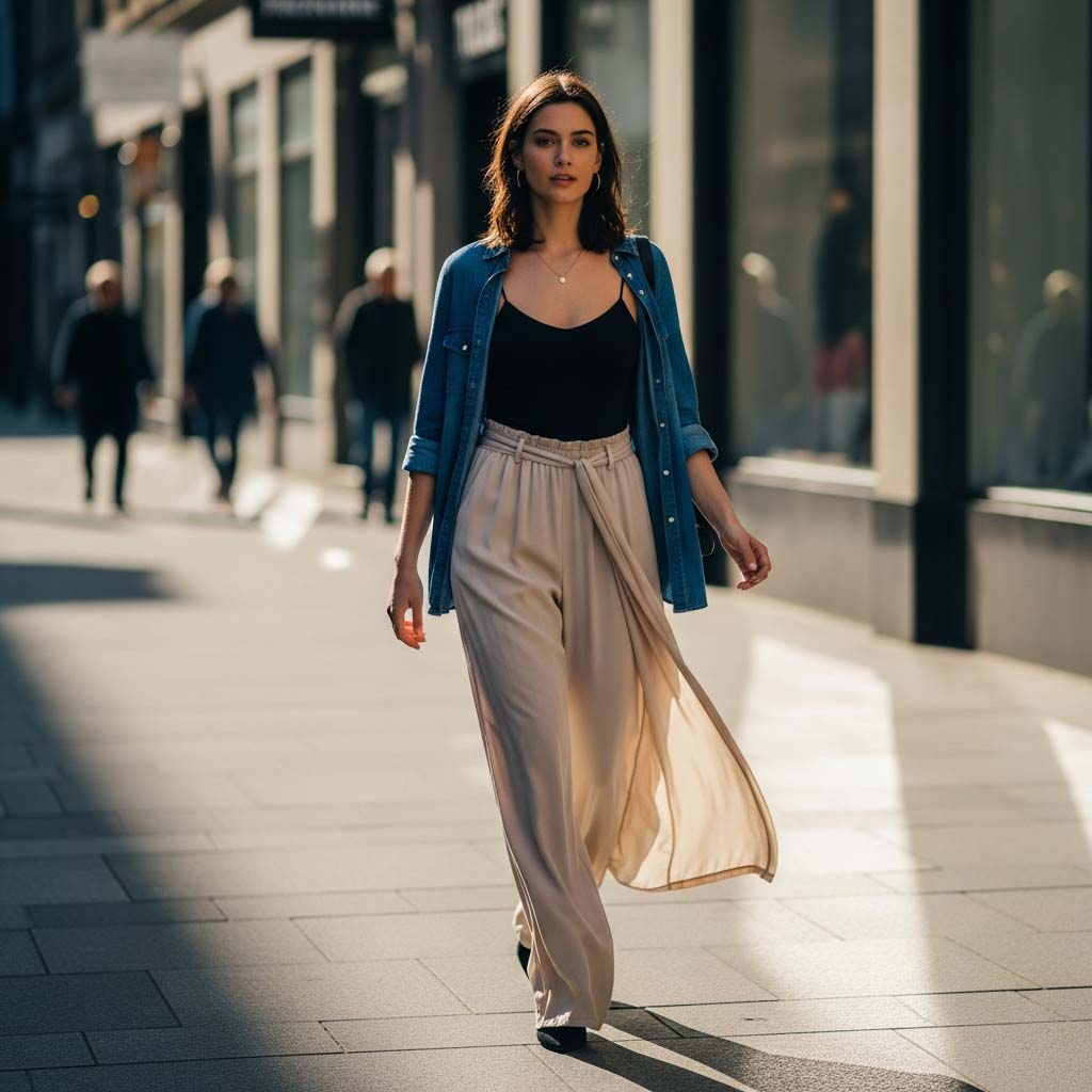• Styling Core: Vertical Elongation. Best paired with high-waisted, loose bottoms such as palazzo trousers or high-waisted A-line skirts.