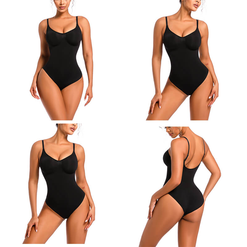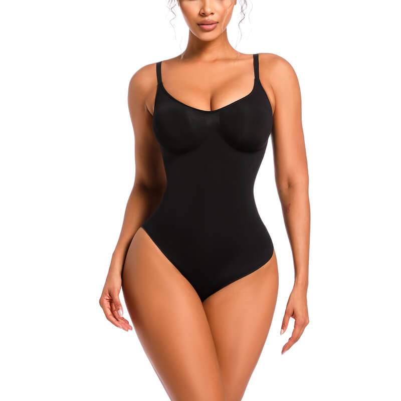 Seamless Sculpt Mid Thigh Bodysuit in black