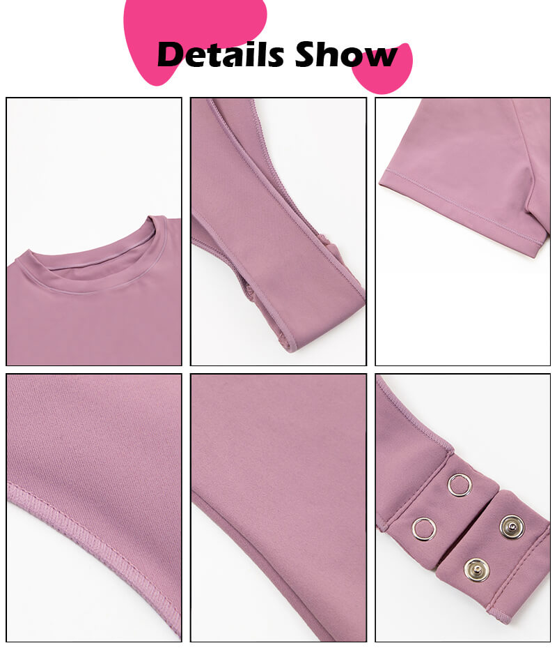 High Neck Crewline, Short Sleeves, High Cut Leg Opening, Brief Back, 100% Cotton Gusset, Snap Closure