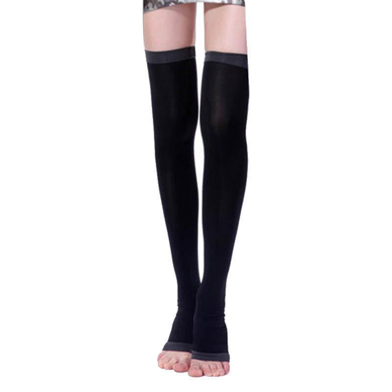 ➤Anti-Slip Silicone Dot - Thigh high compression stockings with silicone lined top band to keep the garment in place. Comfortable fit and open-toe design for easy to put on. Comfortable for all-day, everyday use.